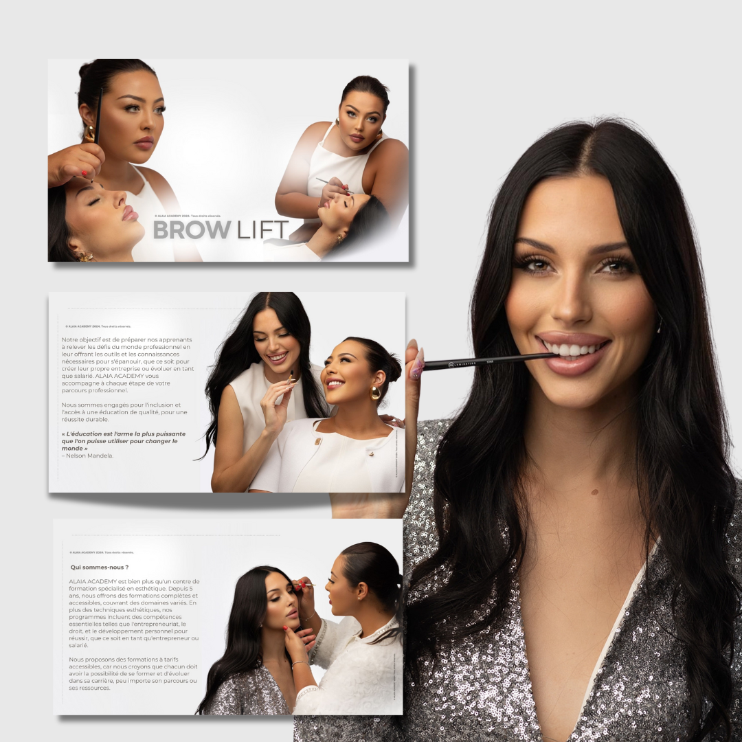 Élodie, formatrice et directrice d'ALAIA ACADEMY, est une experte reconnue dans le domaine du Brow Lift. Forte de 11 formations spécialisées à son actif, elle a acquis une maîtrise exceptionnelle de cette technique. Son parcours, riche en apprentissage et en perfectionnement, lui permet de transmettre avec passion et précision les compétences essentielles pour exceller dans le Brow Lift. Sous sa direction, ALAIA ACADEMY s'engage à offrir une formation de la plus haute qualité, basée sur une expertise approfondie et une expérience pratique inégalée.